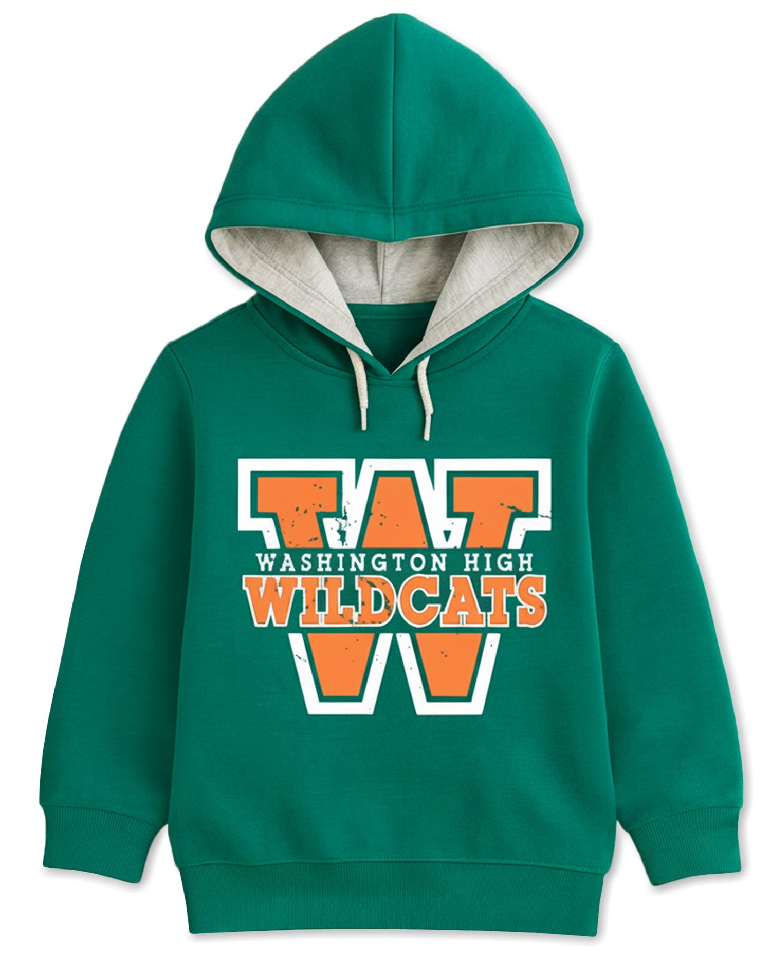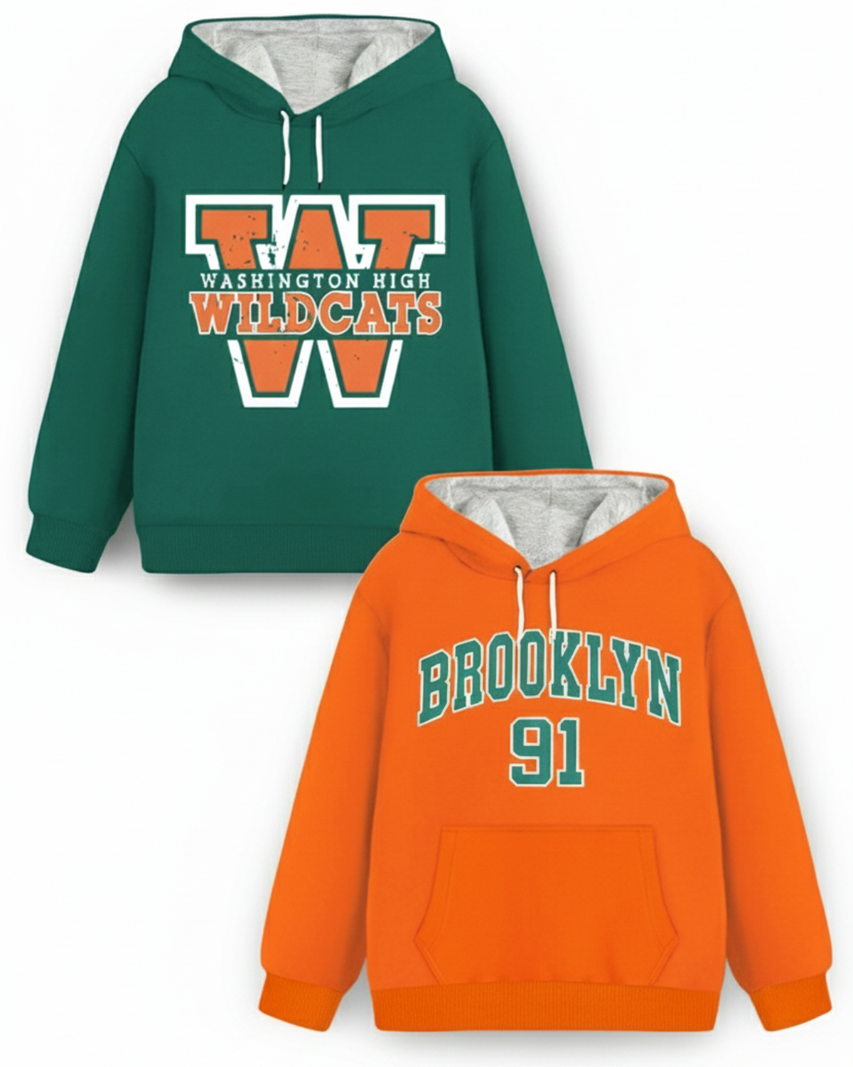 Trampoline Fleece Knit Full Sleeves Wildcats & Brooklyn Printed Hooded Winter Sweatshirt Pack of 2 - Green Orange
