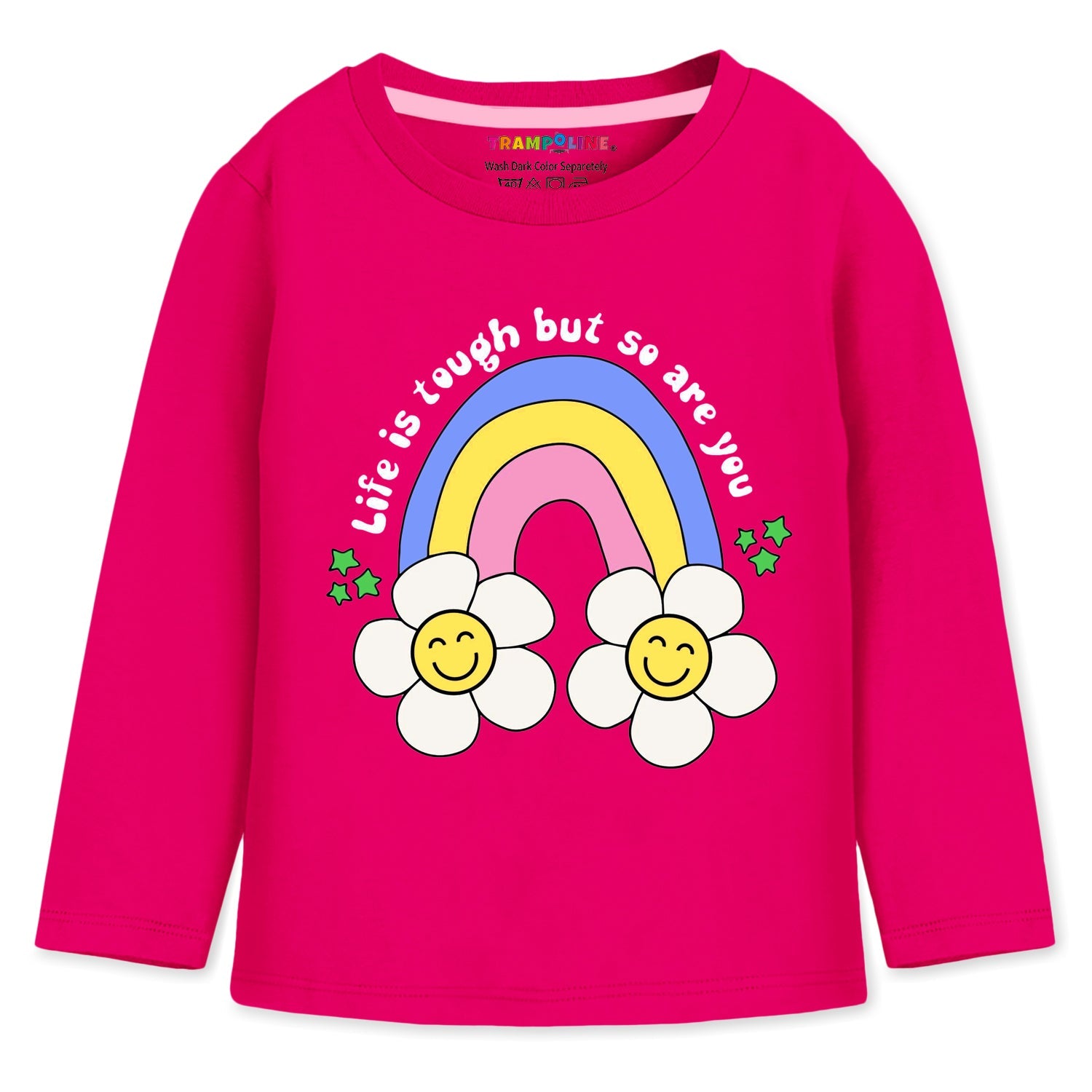 Trampoline Cotton Blend Knit Full Sleeves Heart & Flower Printed Tees Pack Of 5 - Multi Colour