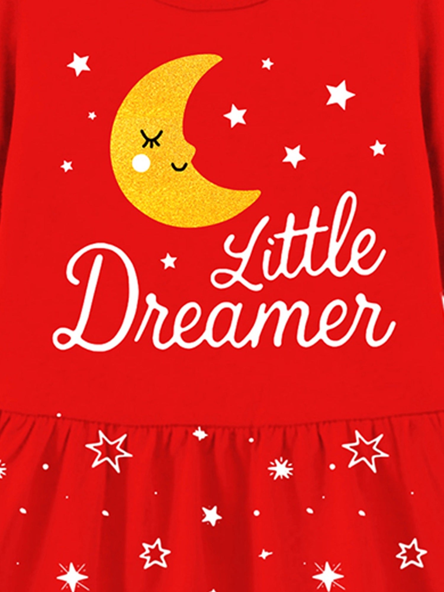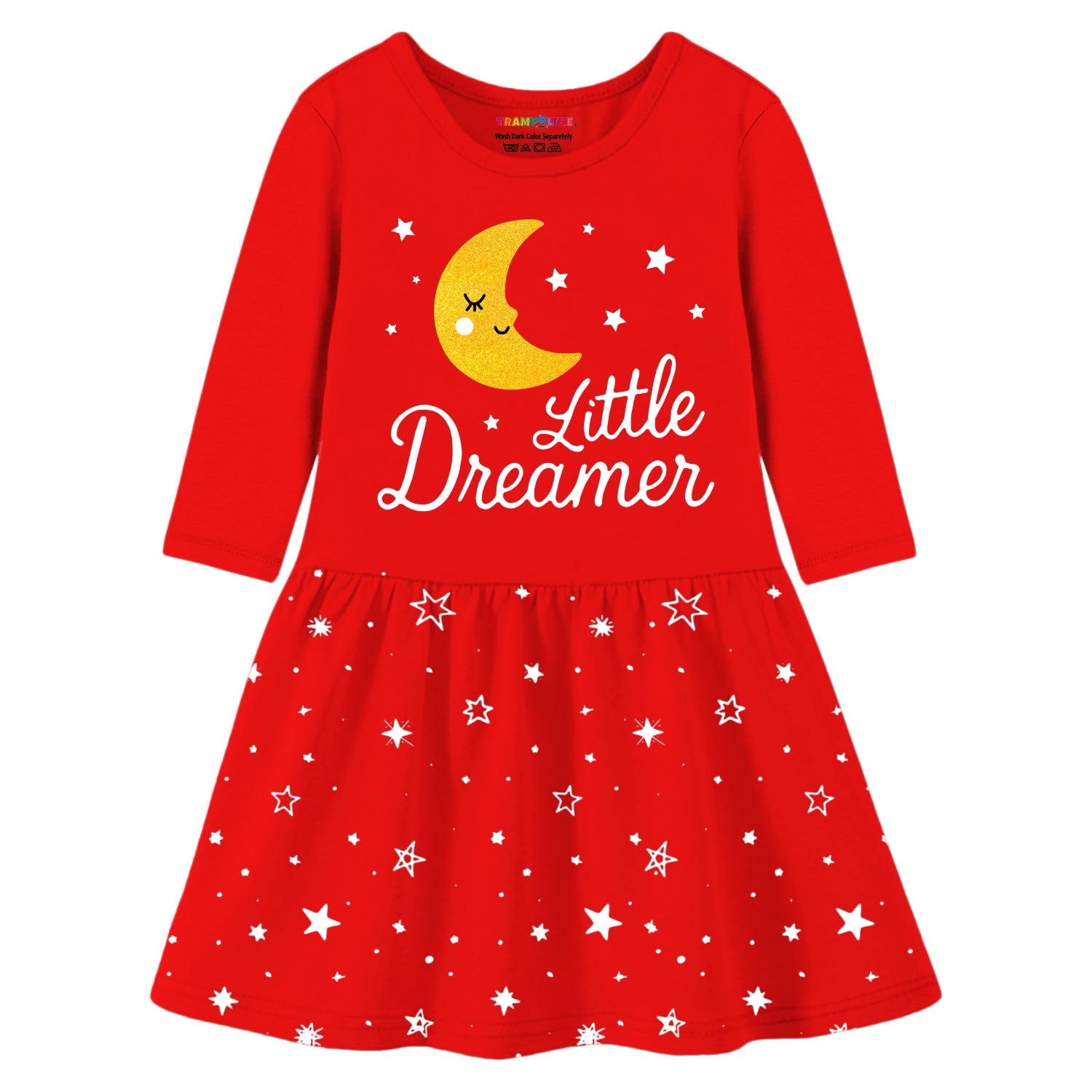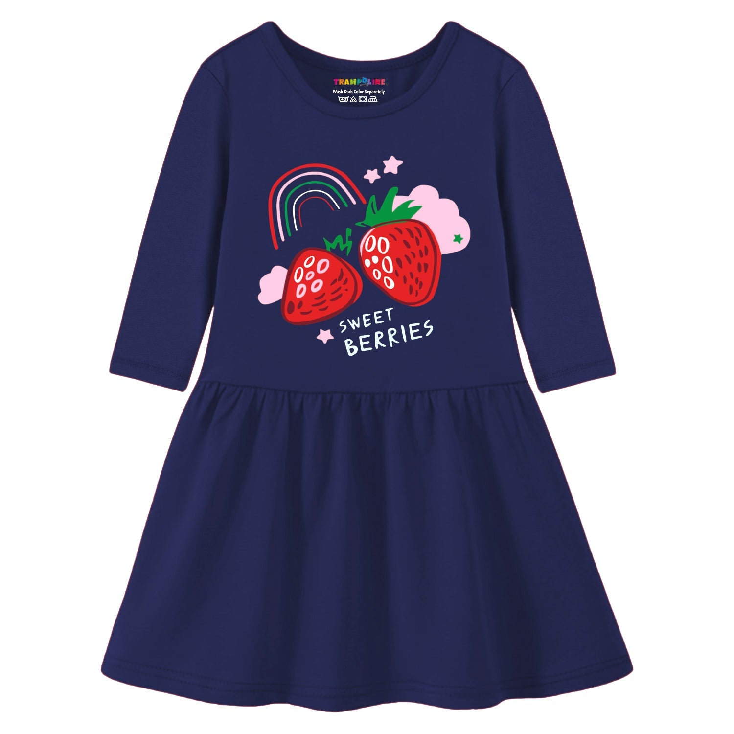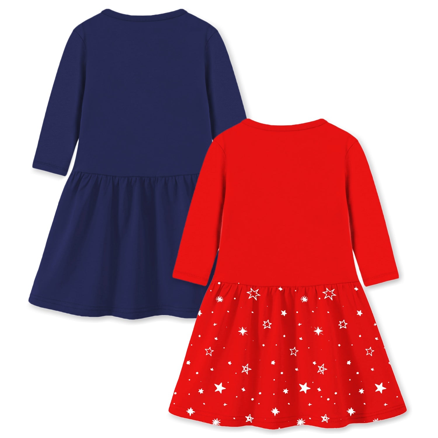 Trampoline Cotton Blend Knit Pack Of 2 Three Fourth Sleeves Princess & Strawberry Printed Dress - Red & Blue