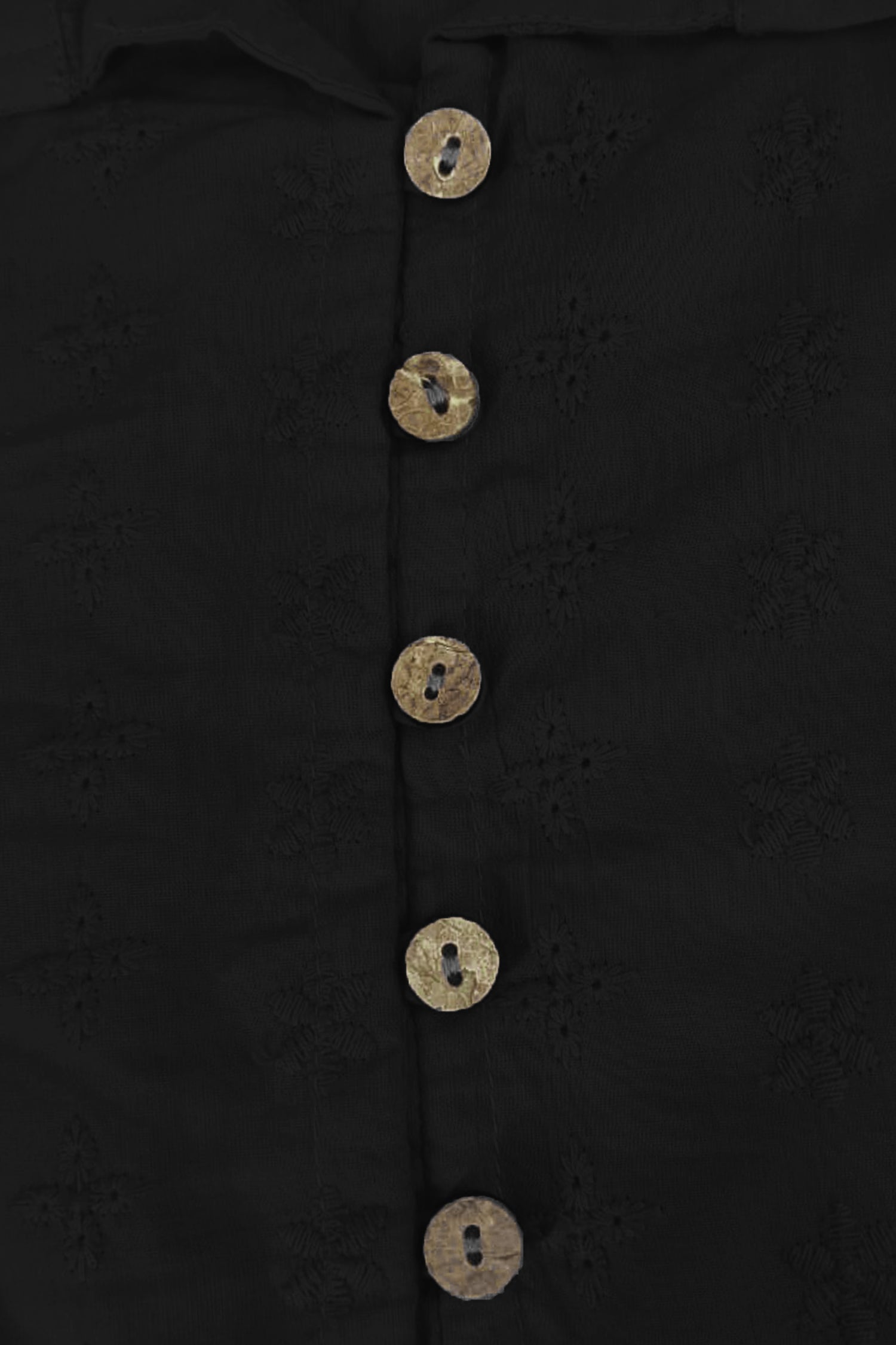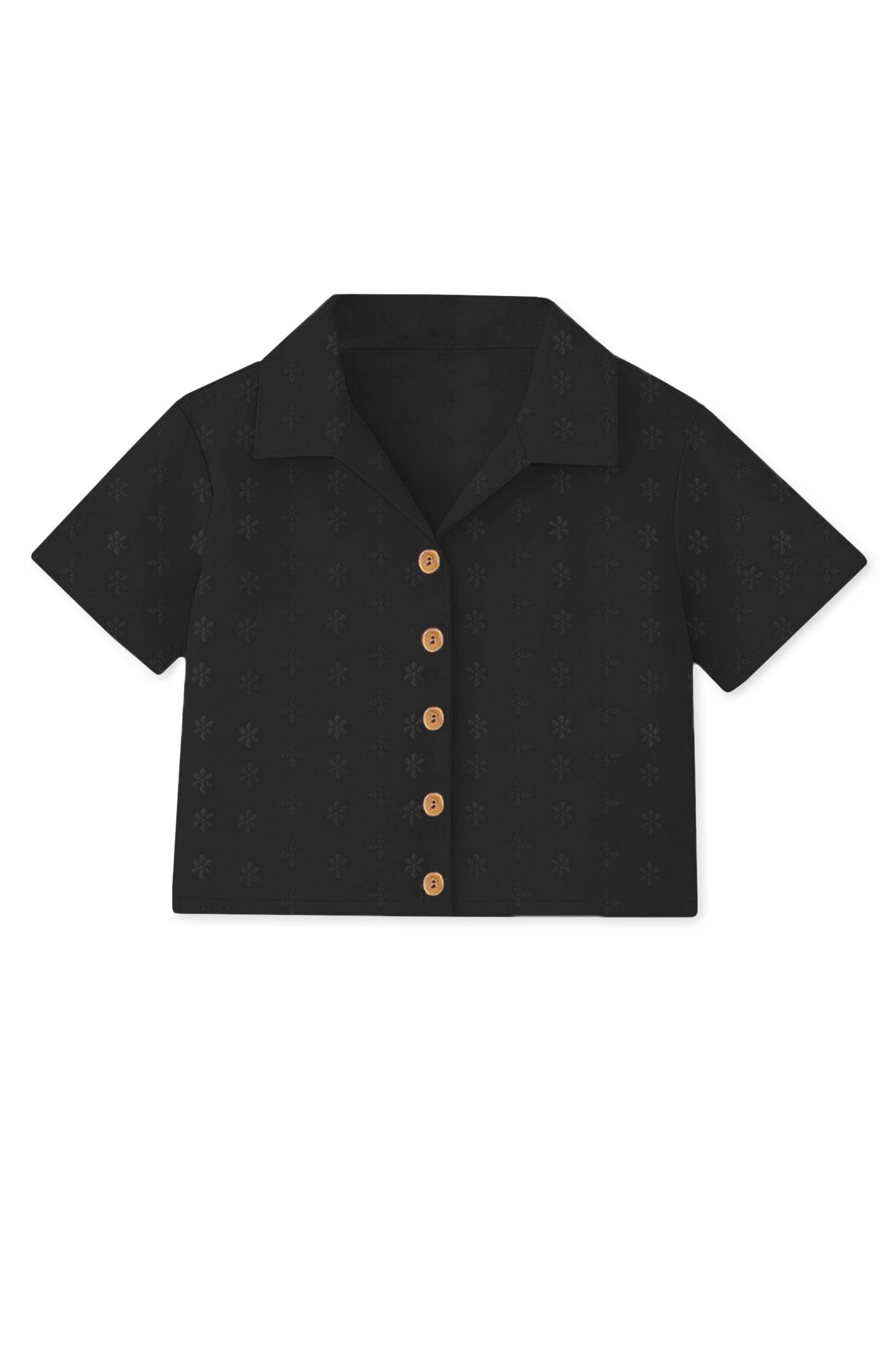 Trampoline Cotton Knit Schiffli Top with Trousers Clothing Set - Black