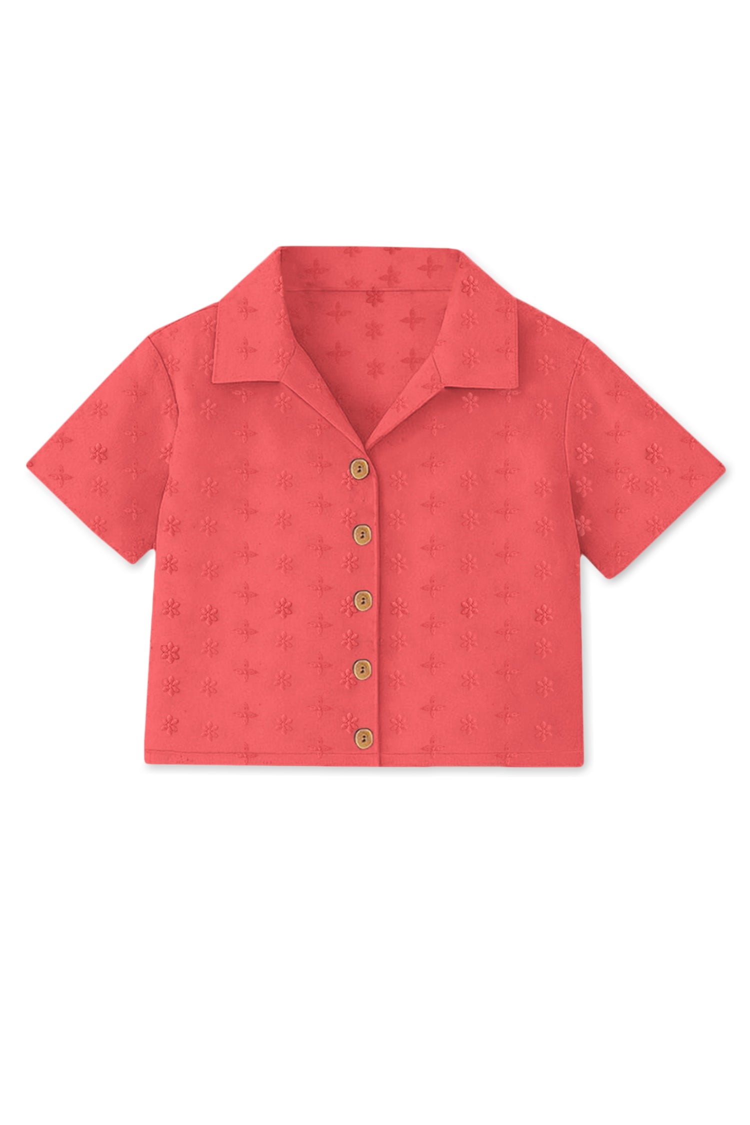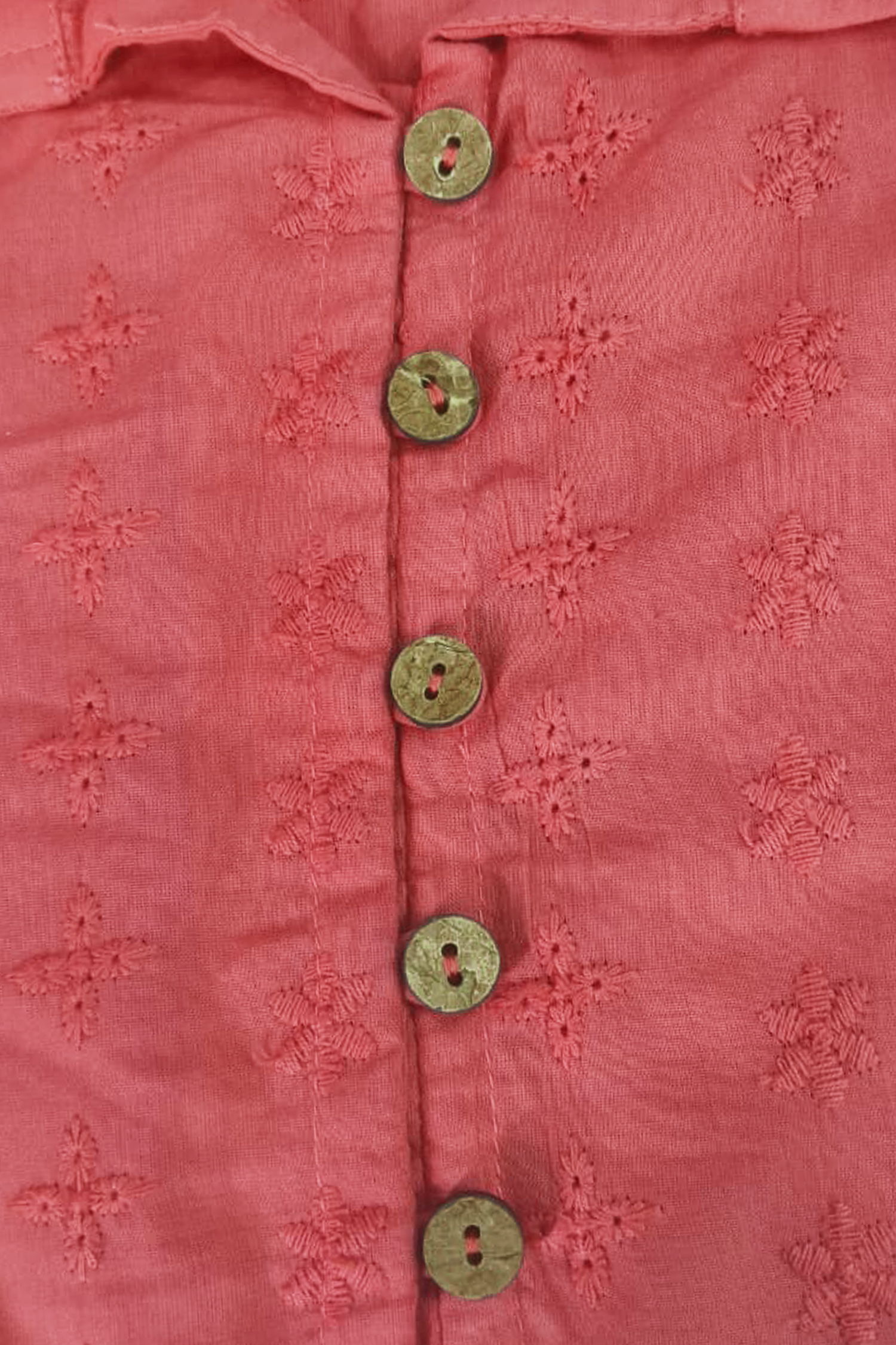 Trampoline Cotton Knit Schiffli Top with Trousers Clothing Set - Coral Pink