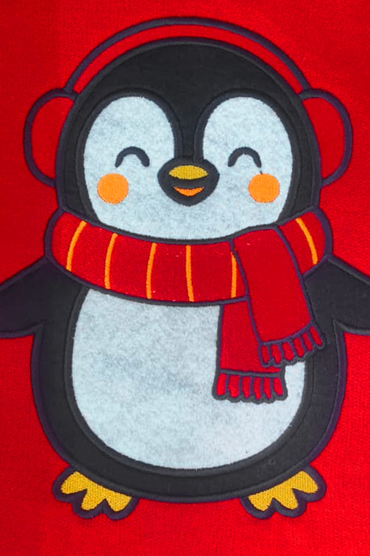 Trampoline Fleece Full Sleeves Penguin Patch Embroidered Sweatshirt - Red