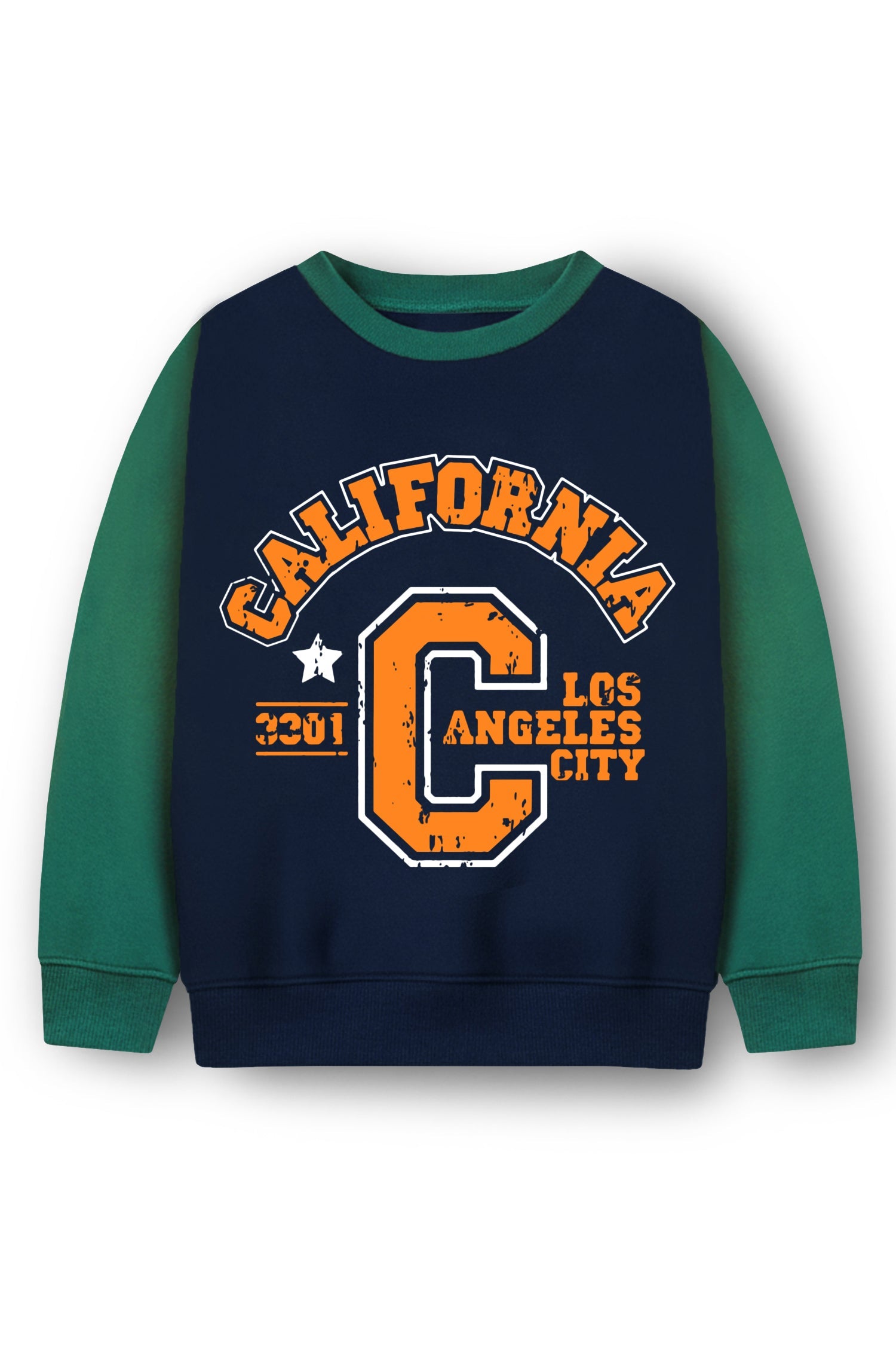 Trampoline Fleece Knit Full Sleeves California Printed Colour Blocked Winter Sweatshirt - Blue & Green