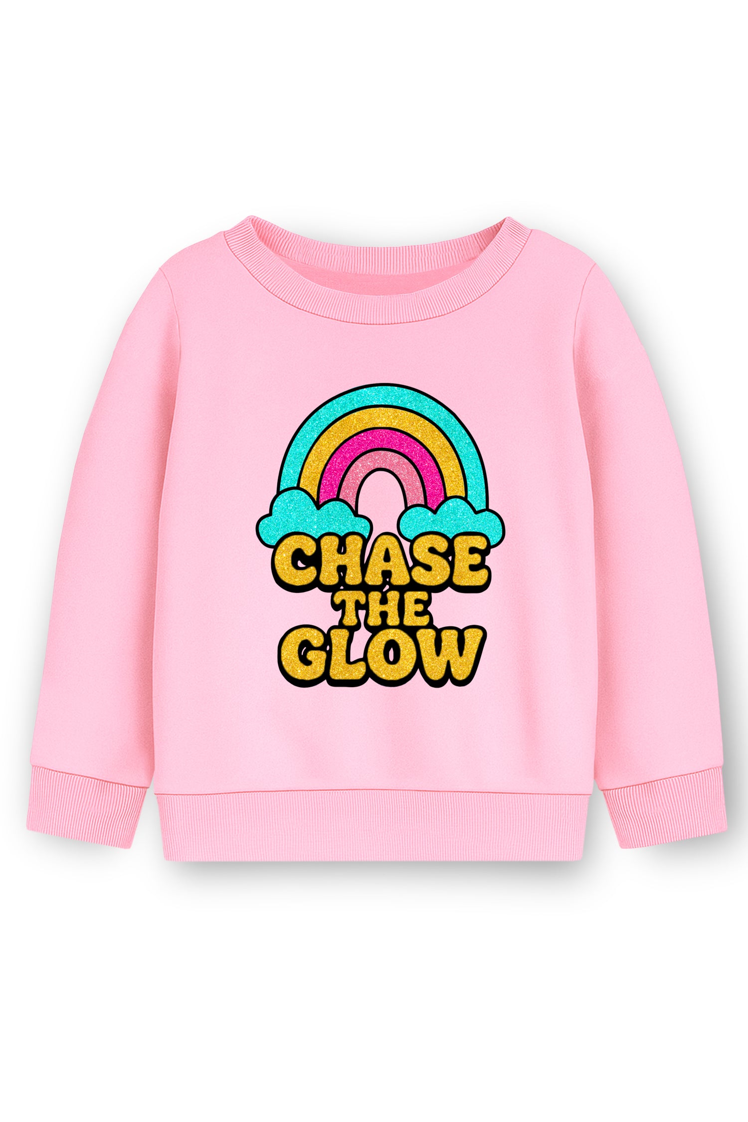 Trampoline Fleece Knit Full Sleeves Chase The Glow Printed Winter Sweatshirt - Pink