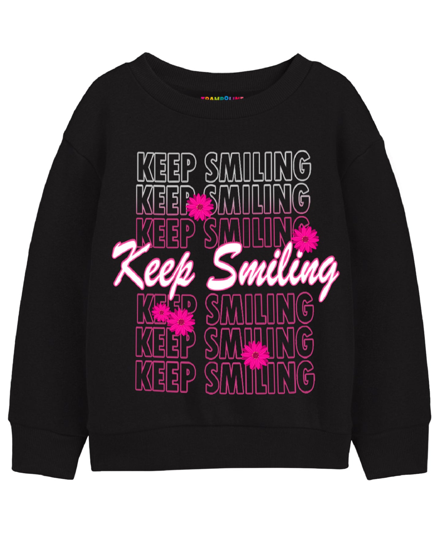Trampoline Fleece Knit Full Sleeves Keep Smiling & Cat Printed Winter Sweatshirt Pack Of 2 - Black Pink
