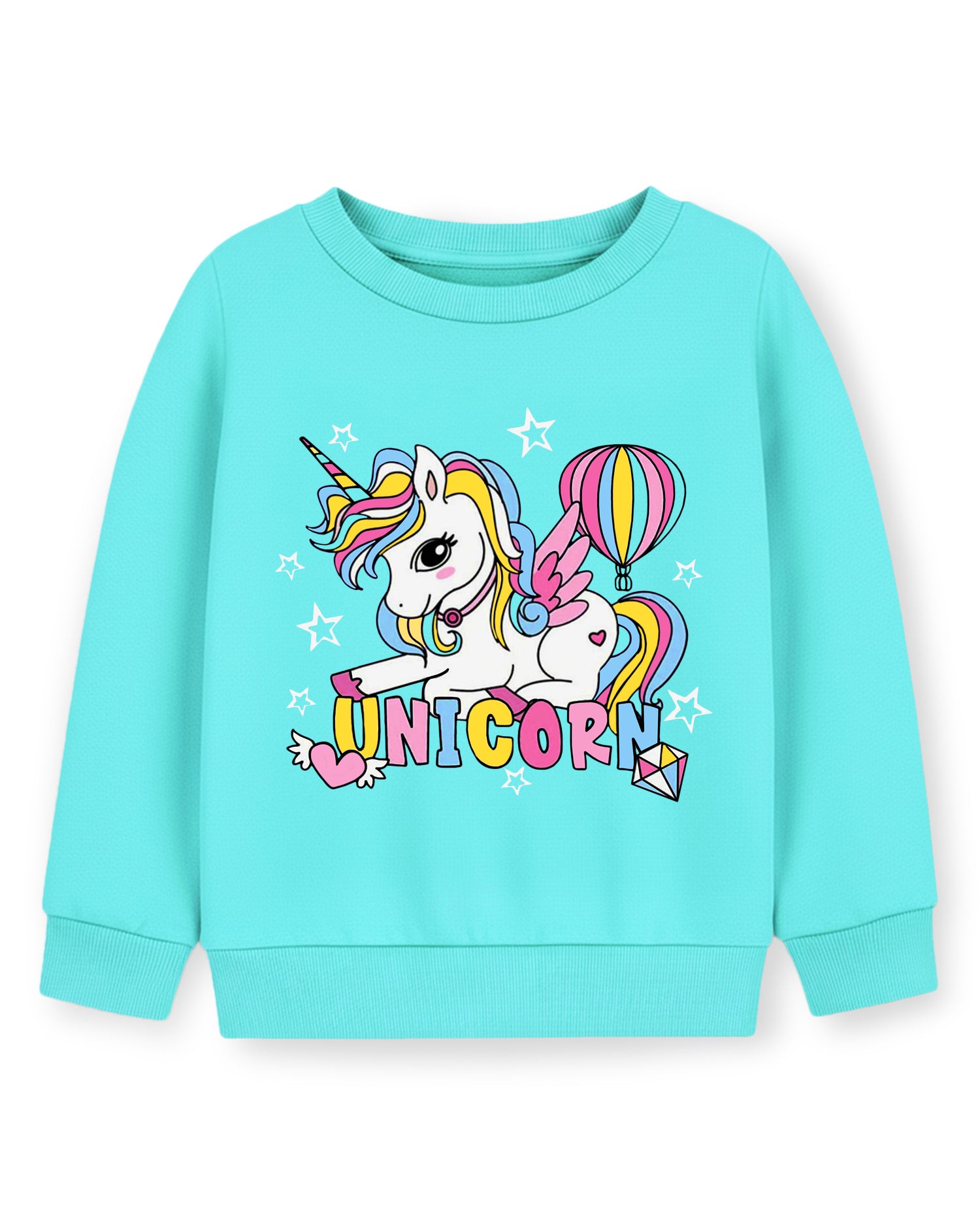 Trampoline Fleece Knit Full Sleeves Keep Smiling & Unicorn Printed Winter Sweatshirt Pack Of 2 - Black Sky Blue