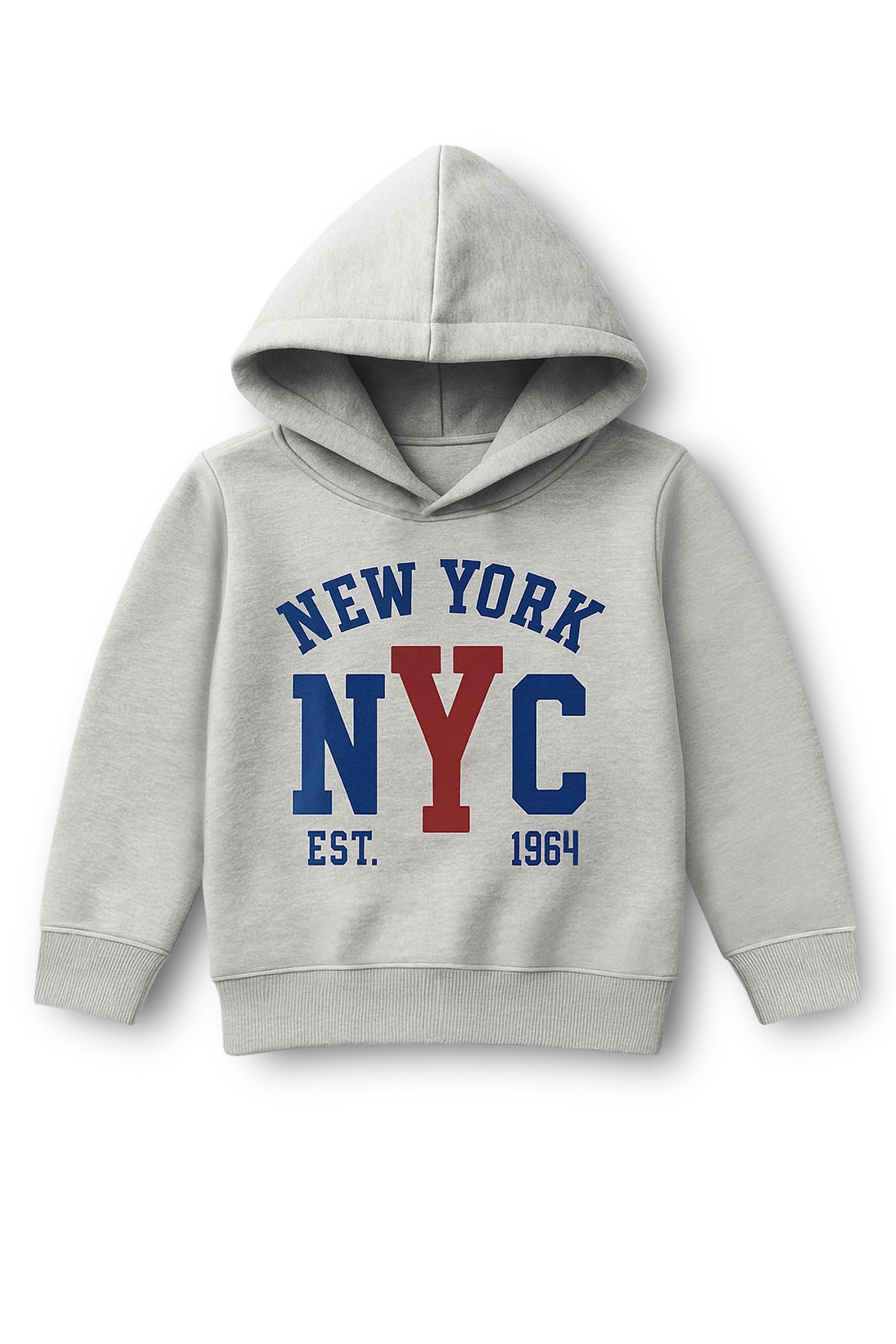 Trampoline Fleece Knit Full Sleeves New York Printed Winter Hooded Sweatshirt - Grey