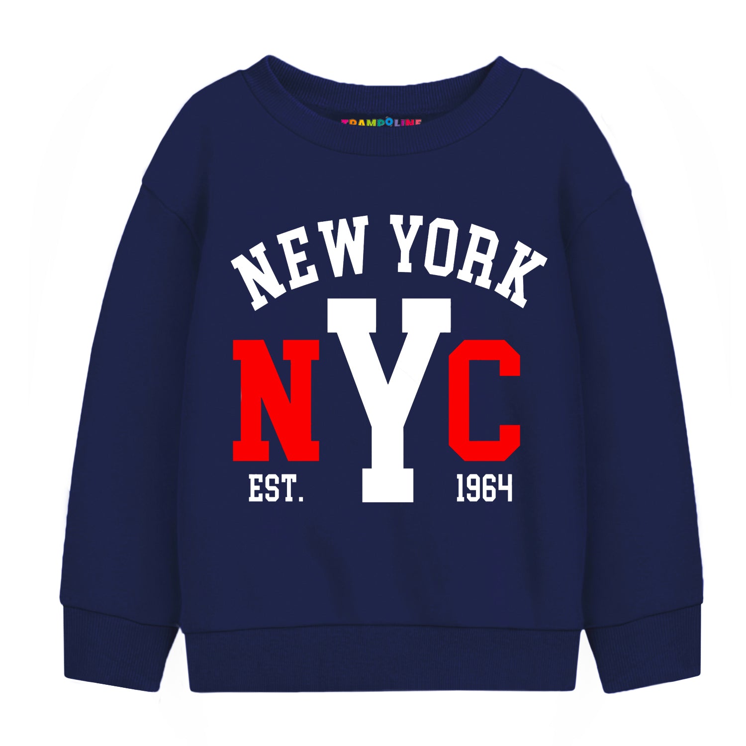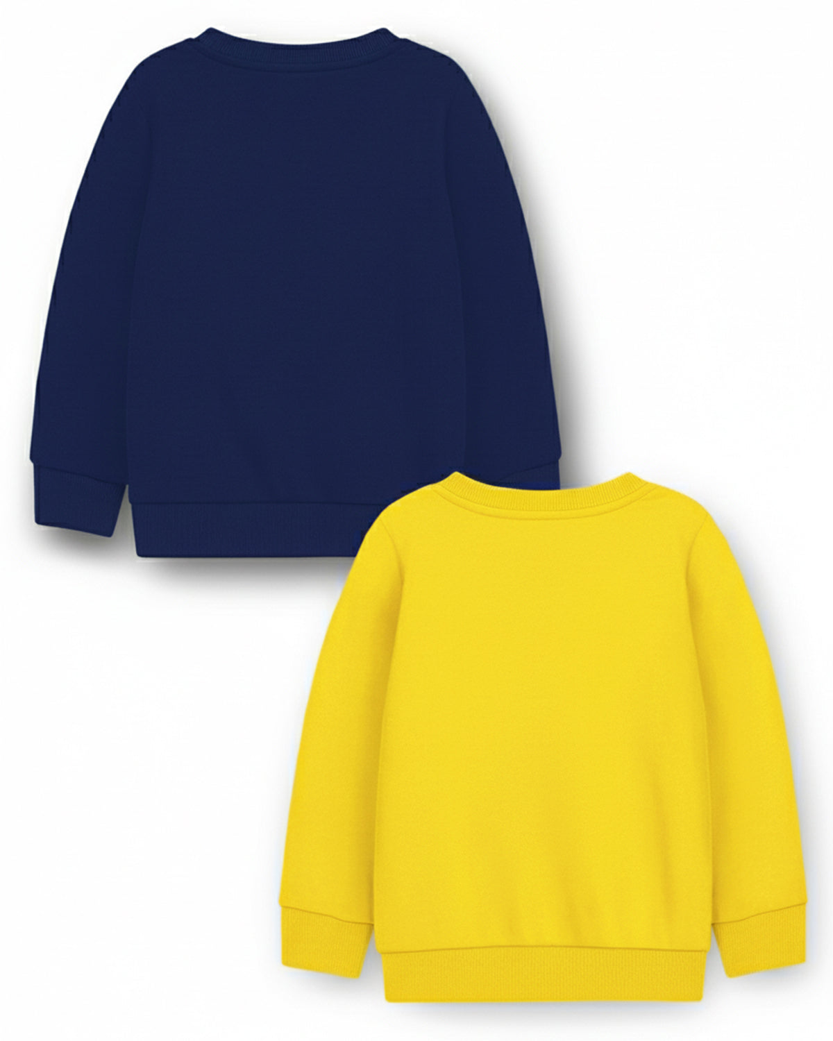 Trampoline Fleece Knit Full Sleeves Nyc & Bike Printed Winter Sweatshirt Pack Of 2 - Navy Blue Yellow