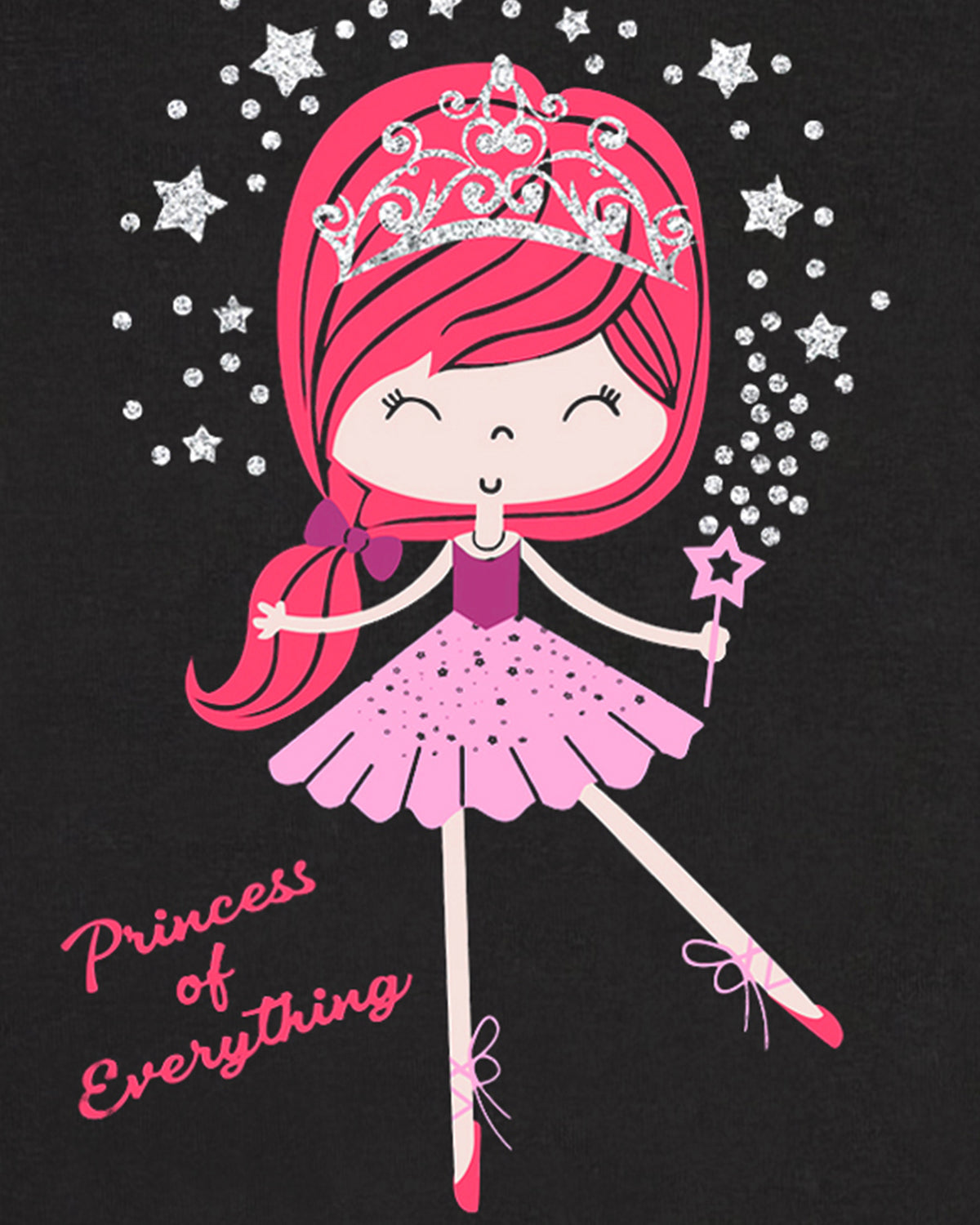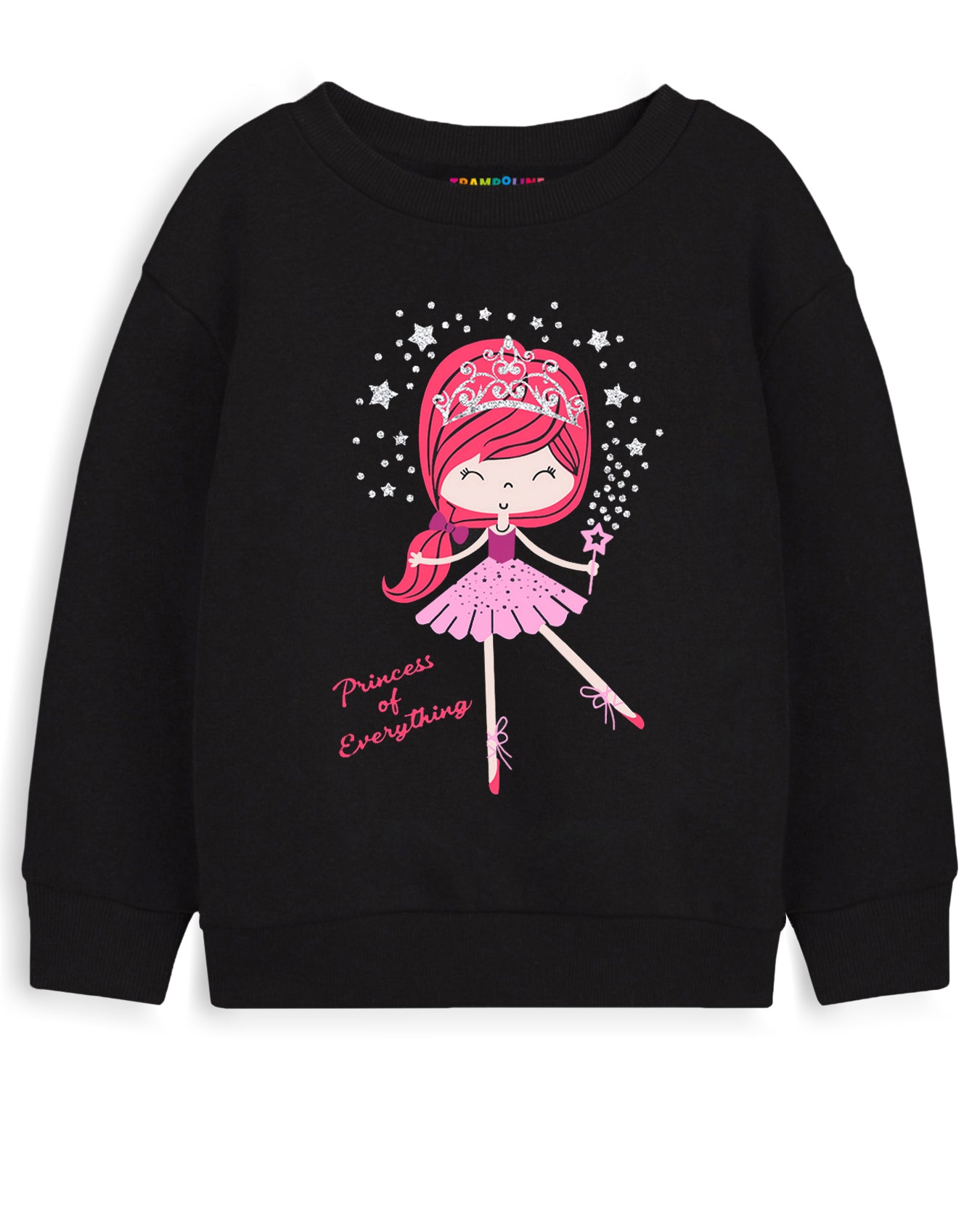 Trampoline Fleece Knit Full Sleeves Princess Printed Winter Sweatshirt Pack Of 2 - Black Pink