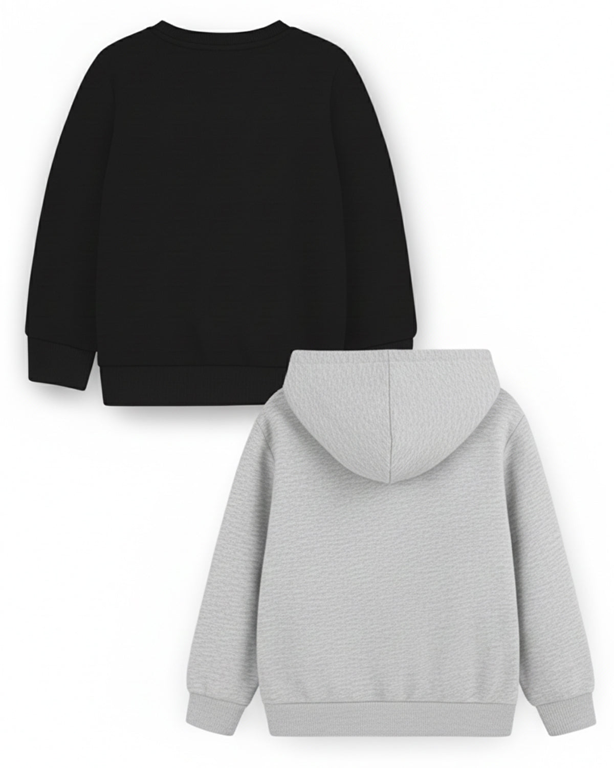 This pack of 2 kids hooded sweatshirts is designed for warmth, comfort, and everyday winter style. Made from soft fleece fabric with a cozy hood and ribbed cuffs for insulation, these hoodies keep children comfortable during cold weather. The trendy printed and solid designs make them suitable for school, outings, playtime, and everyday wear. A value combo that delivers winter protection, breathability, and long-lasting quality, perfect for both boys and girls.