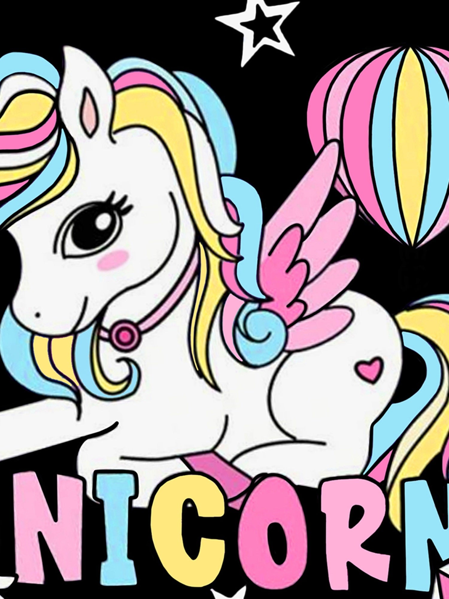 Trampoline Fleece Knit Full Sleeves Unicorn Printed Winter Sweatshirt - Black