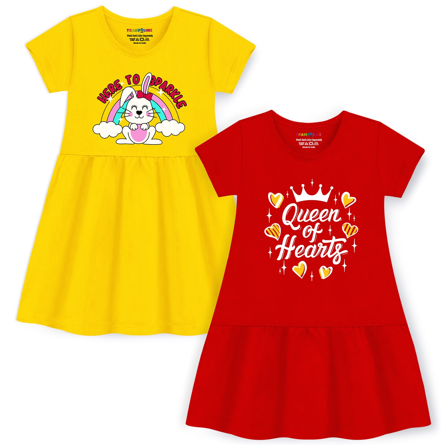 Double the delight with this vibrant pack of two half-sleeve midi dresses! Featuring playful prints and crafted from breathable cotton-blend fabric, these dresses are the perfect summer essentials. Designed for style, comfort, and all her favorite moments.