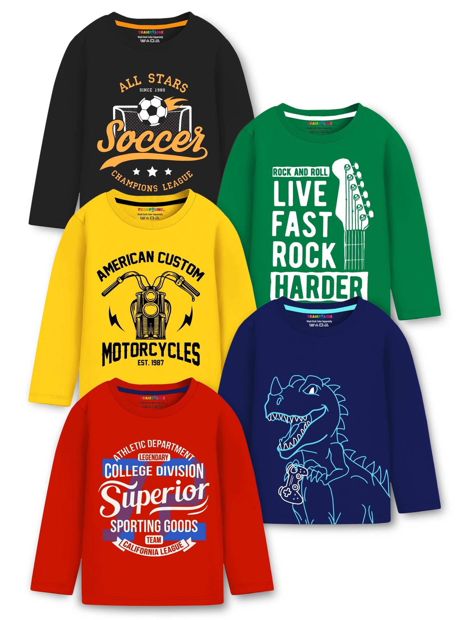 Trampoline Knit Cotton Blend Full Sleeves Typography Printed Tees Pack Of 5 - Multi Colour