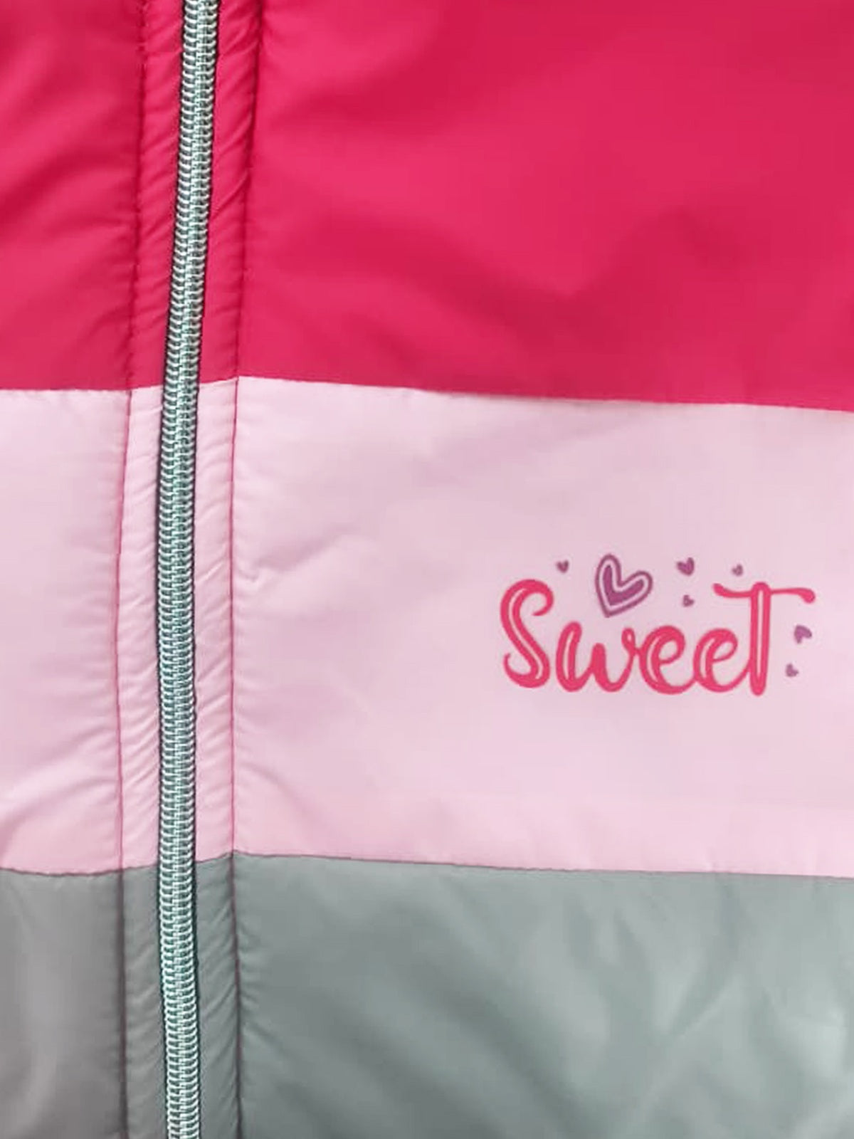 Trampoline Knit Full Sleeves Colorblock Puffer Winter Jacket With 2 Front Pockets - Pink & Grey
