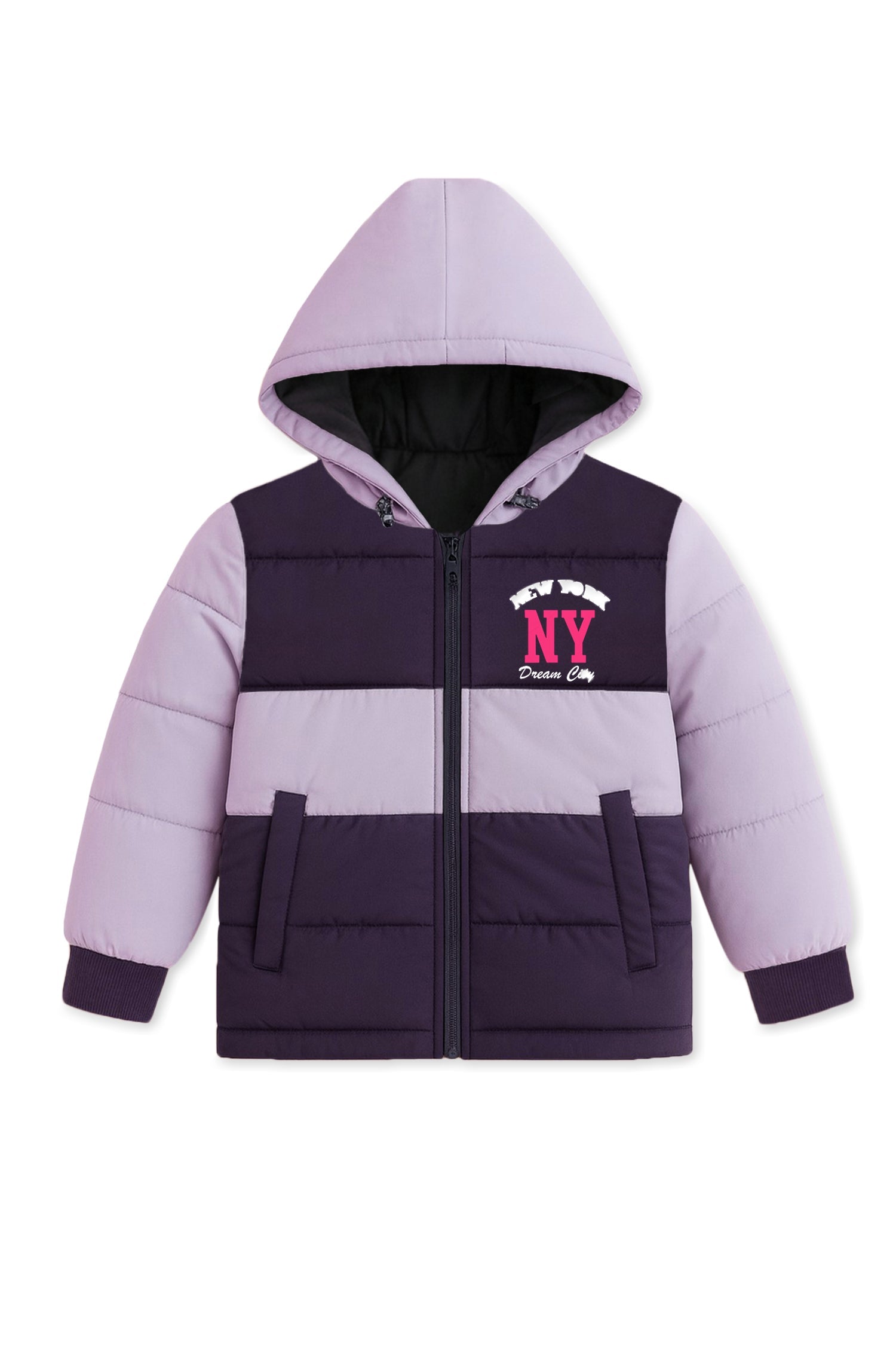 Trampoline Knit Full Sleeves Colorblock Puffer Winter Jacket With 2 Front Pockets - Purple