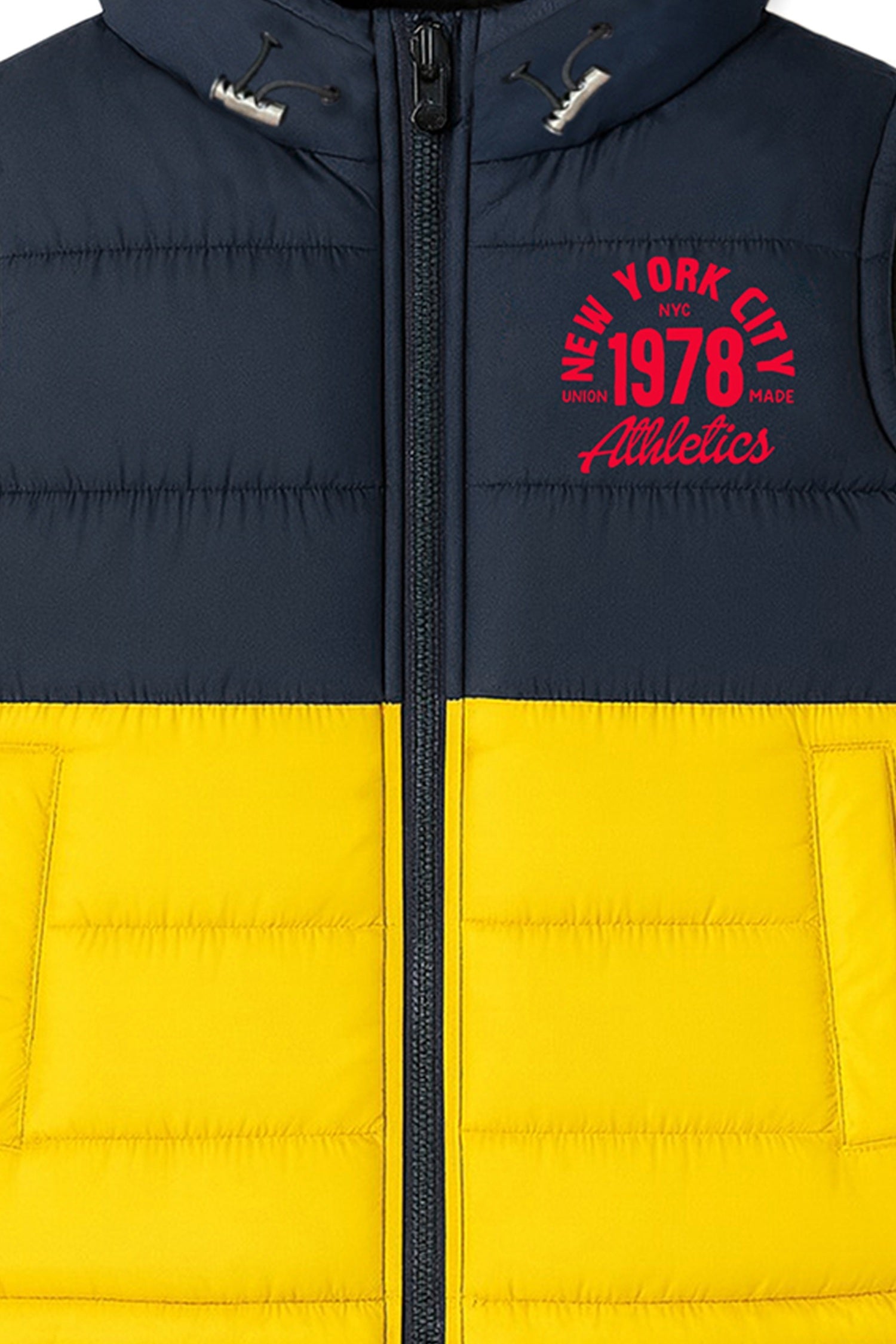 Add a warm, cosy and comfortable colorblock puffed jacket for winters to your kids winter wear collection. This jacket comes with a hood which ensures that your child stays warm any time of the day and its regular fit is designed for maximum comfort. Perfect for winter wear, the easy care fabric makes it a no fuss option for little kids.