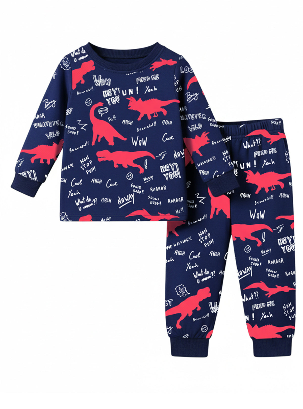 Trampoline Knit Terry Loop Dinosaur Printed Tee & Track Pant Set - Multicolor